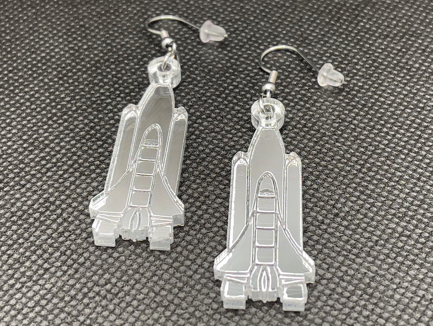 6061 Aluminum Space Shuttle earrings with Sterling Silver leverbacks.